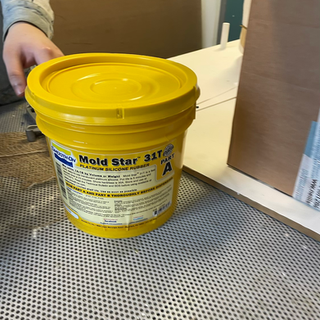 to create the cuts i had rolled out the clay onto the flat surface and then began to smooth out the edges. This is vital as it will make your prosthetic piece “melt” so to speak, into your skin, I then used my sculpting tools to create a thin but deep cut. next you have to build two walls around your piece, this is in prep for your silecone mould and prosthetic piece. To create my silicone piece i had to mix parts a+b using mouldstar to create the textur, you measure these out 1:1 so its an equal ratio, however you mesure these in separate cups and mix a pigment colour into one. You do this so when you mix the both together you can see if you have completely mixed them together. once you have put both together you have to mix them straight away as you have limited time before they cure and is no longer useable.